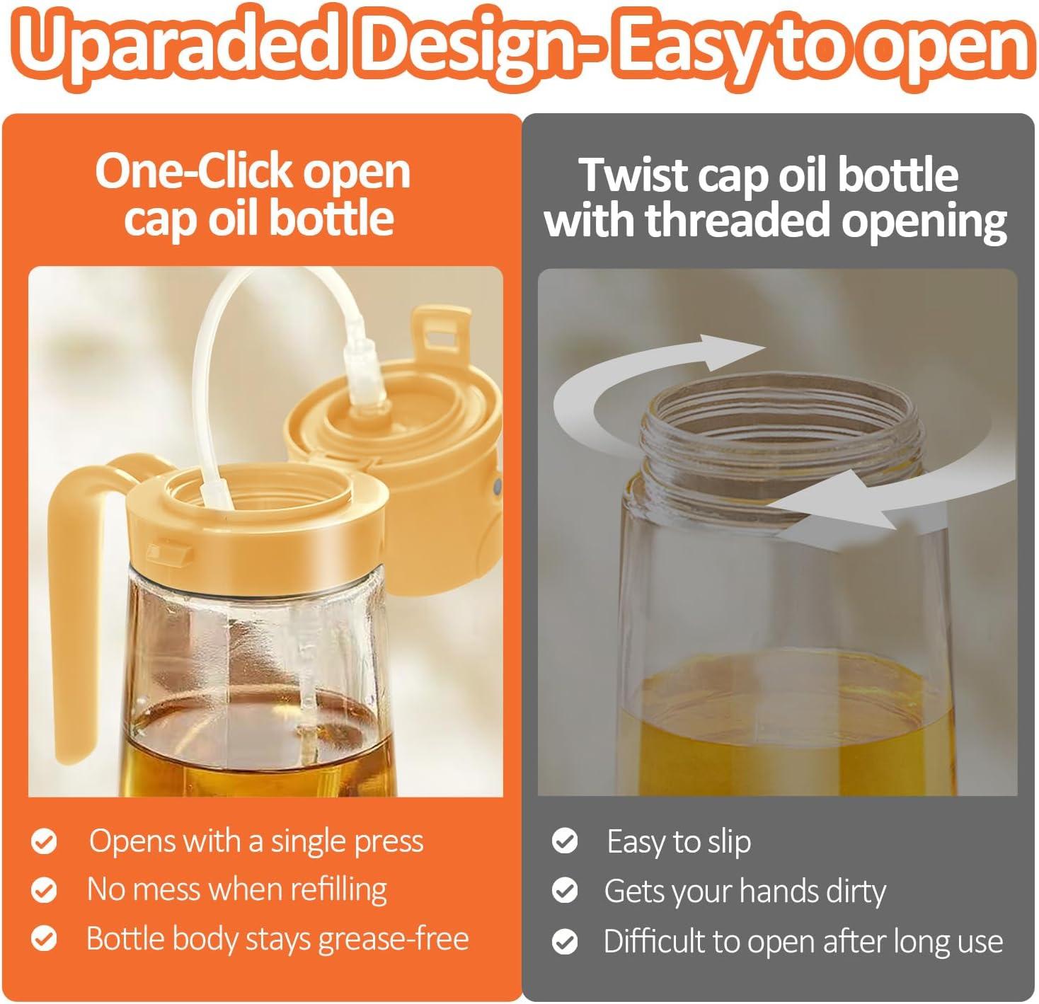 【Premium & Food Grade Materials】: Oil spray bottle for cooking is made of food-grade, BPA-free ABS material and thick, unbreakable, lead-free glass, Transparent glass allows users to easily monitor the oil level, making it convenient to use and manage