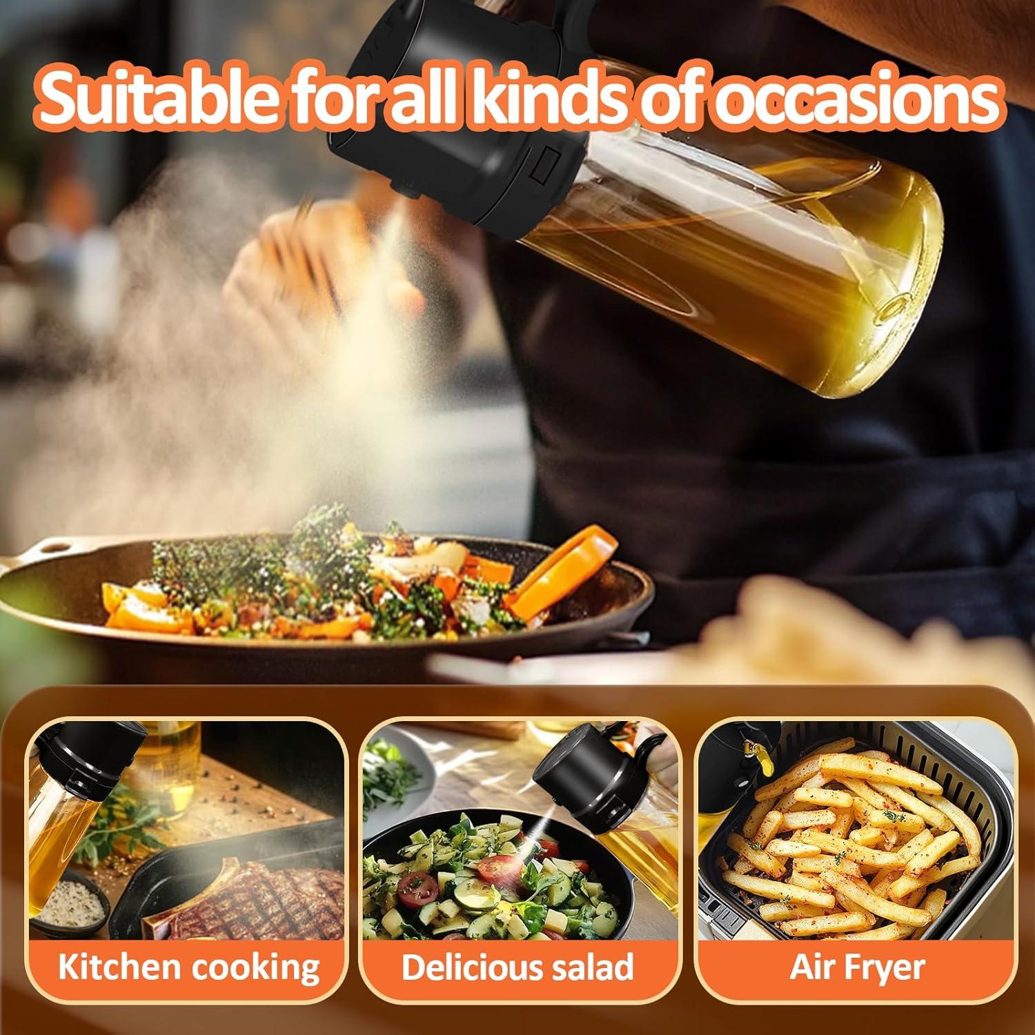 【Dual-Function Design & Multi-Purpose】: Oil mister spray bottle for cooking offers the convenience of both spraying and pouring oil, suitable for a wide range of food preparation processes such as salad dressing, griddle, roasting, grilling