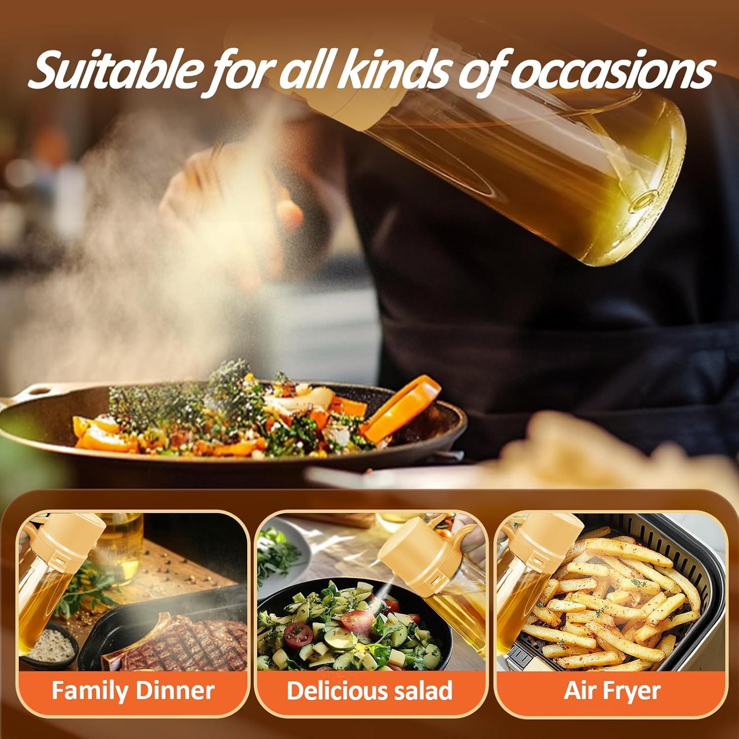 【Dual-Function Design & Multi-Purpose】: Oil mister spray bottle for cooking offers the convenience of both spraying and pouring oil, suitable for a wide range of food preparation processes such as salad dressing, griddle, roasting, grilling
