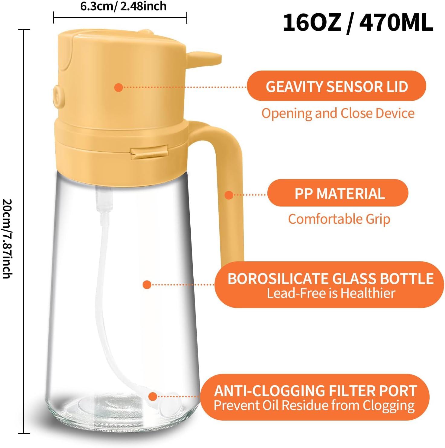 【Precise Oil Control】: 2 in 1 oil dispenser and oil sprayer can help to control the amount of oil while pouring or spraying. Each spray dispenses approximately 0.2 grams of oil, which is easily to control and measure your daily oil intake