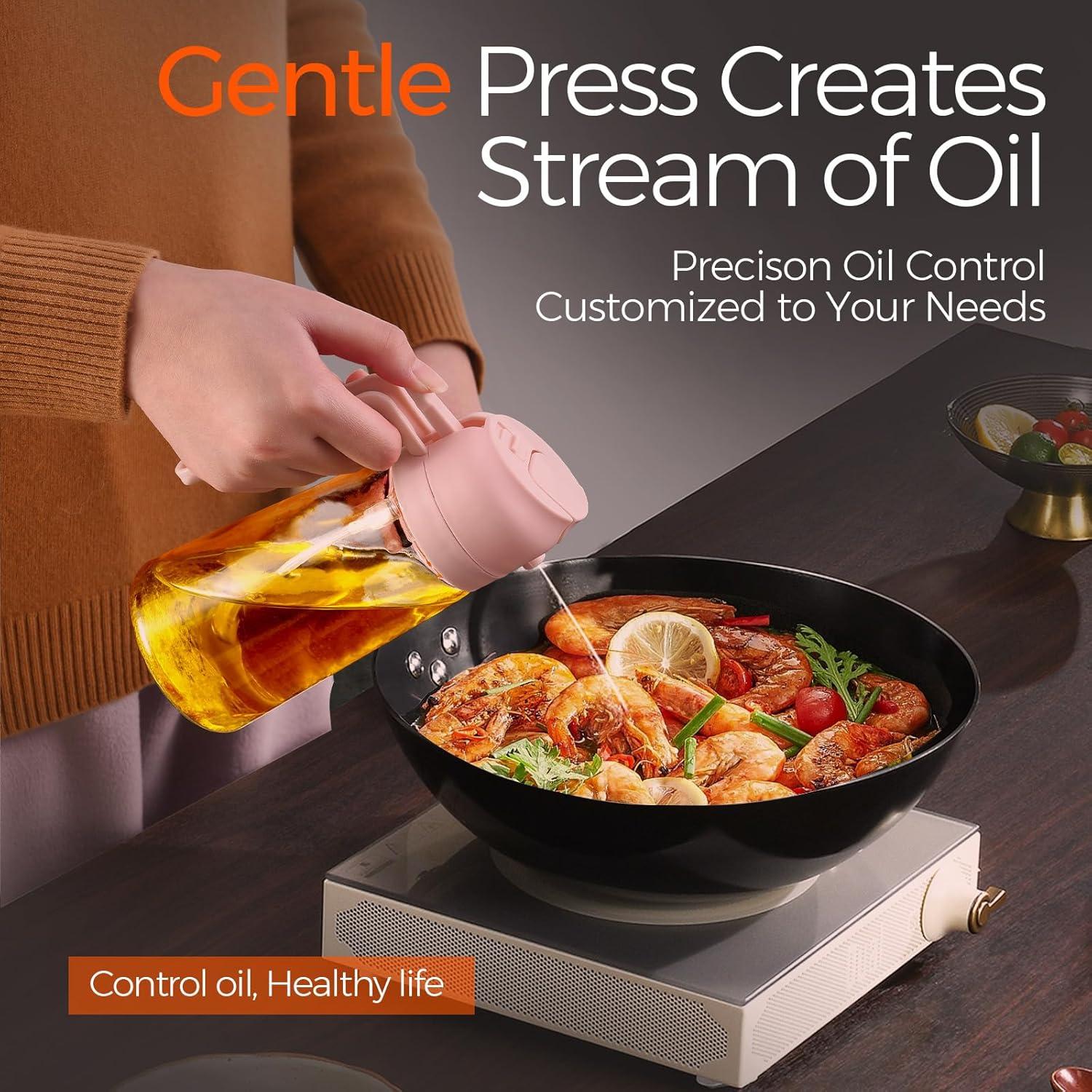 Dual-Function Design & Multi-Purpose: Oil spray bottle for cooking offers the convenience of both spraying and pouring oil, suitable for a wide range of food preparation processes such as salad dressing, griddle, roasting, grilling, make your kitchen efficient and organized
