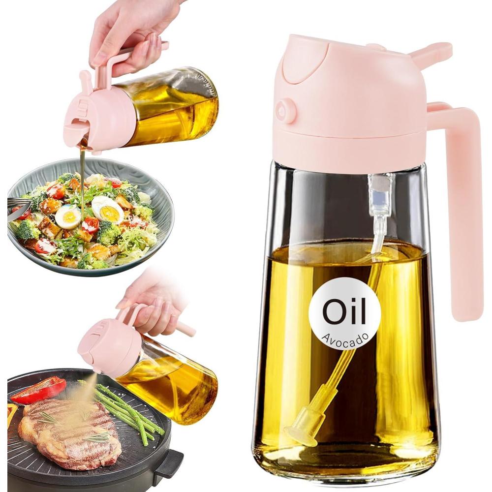 imageYARRAMATE 16oz470ml Glass Olive Oil Sprayer for Cooking with Stickers 2 in 1 Oil Dispenser for Kitchen Gadgets Food Grade Premium Spray Bottle for Salad Frying BBQ Pomelo121Pc PeachPink