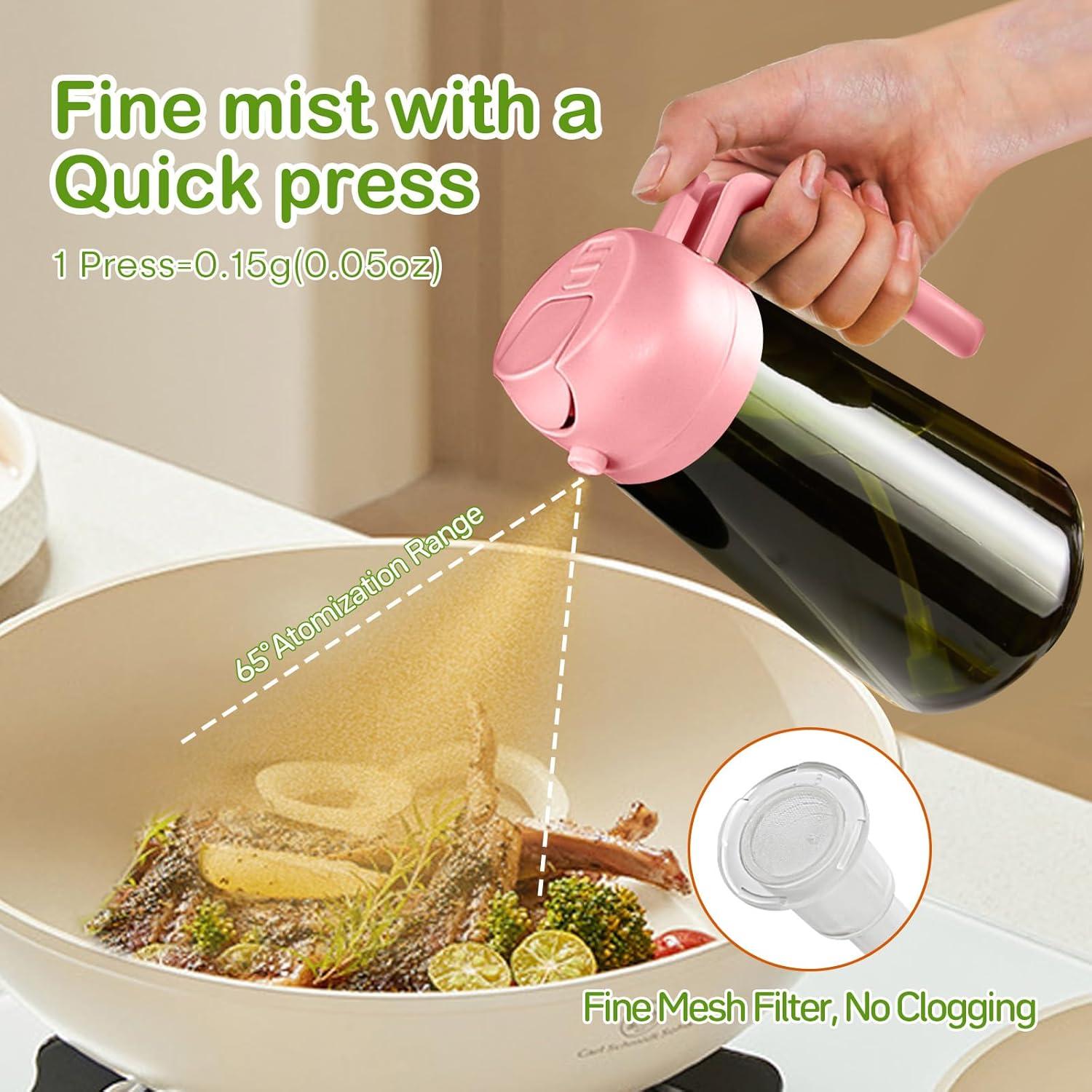 【Dual-Function Design & Multi-Purpose】: Oil mister spray bottle for cooking offers the convenience of both spraying and pouring oil, suitable for a wide range of food preparation processes such as salad dressing, griddle, roasting, grilling
