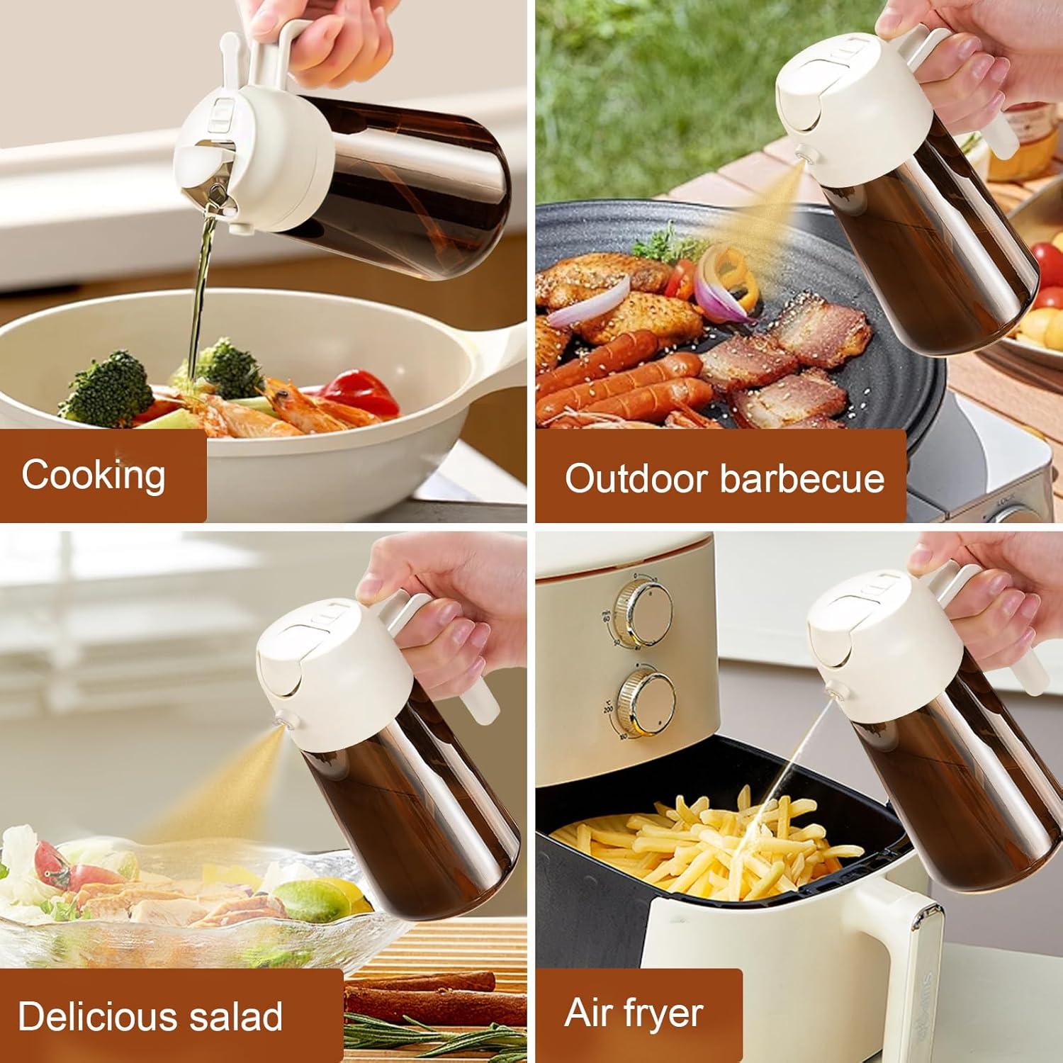 【Dual-Function Design & Multi-Purpose】: Oil mister spray bottle for cooking offers the convenience of both spraying and pouring oil, suitable for a wide range of food preparation processes such as salad dressing, griddle, roasting, grilling