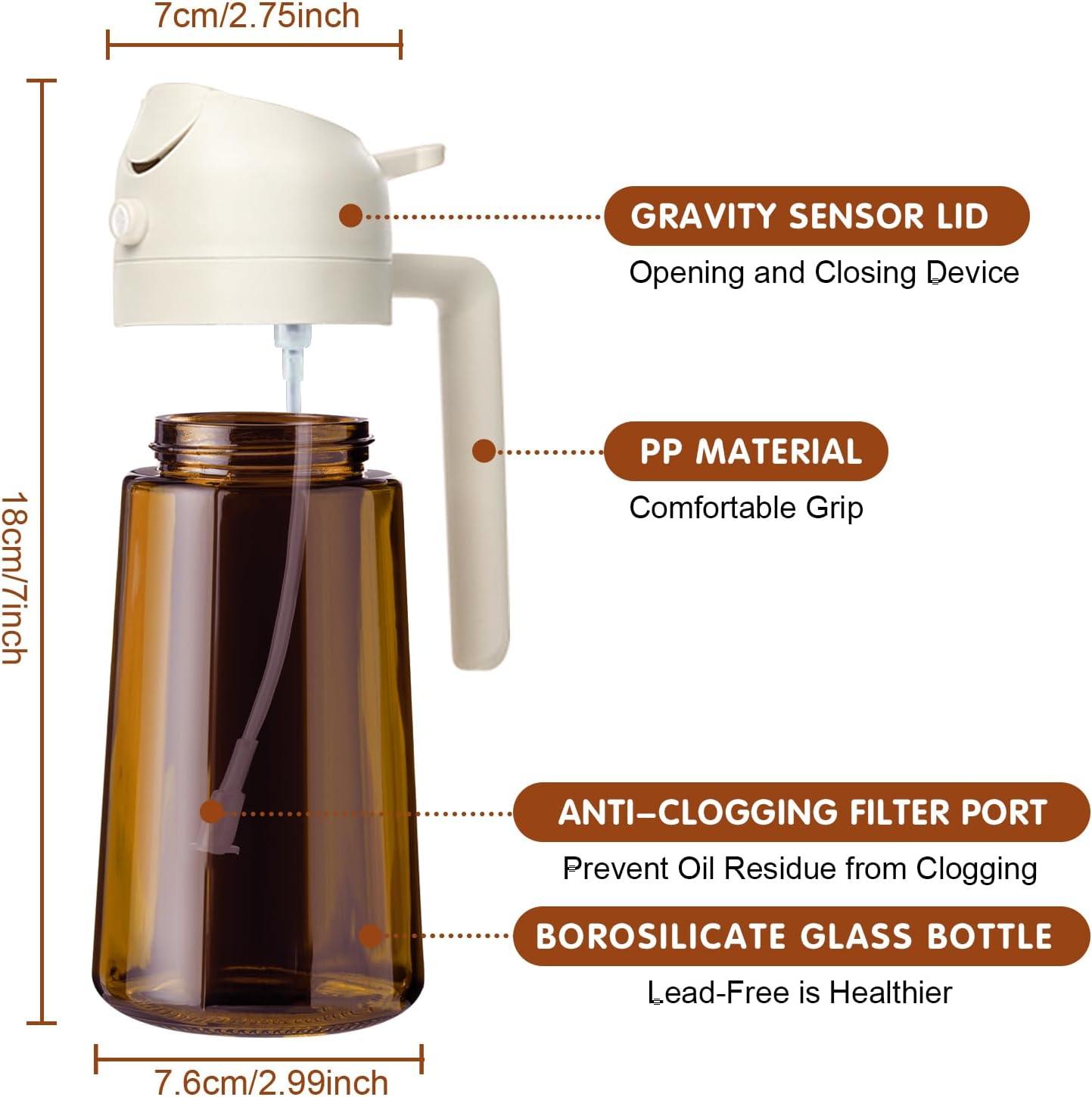 【Precise Oil Control】: 2 in 1 oil dispenser and oil sprayer can help to control the amount of oil while pouring or spraying. Each spray dispenses approximately 0.2 grams of oil, which is easily to control and measure your daily oil intake