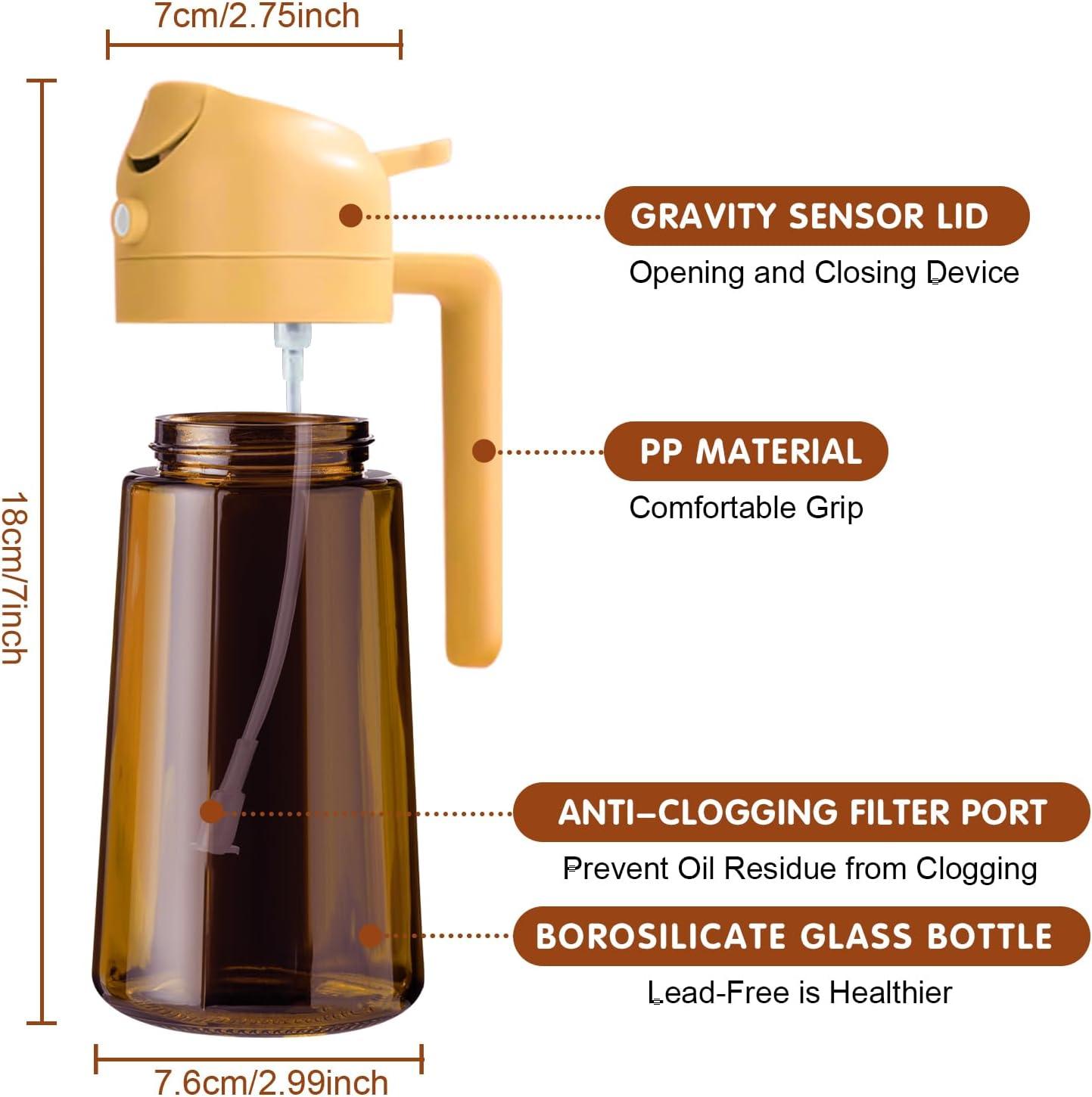 【Precise Oil Control】: 2 in 1 oil dispenser and oil sprayer can help to control the amount of oil while pouring or spraying. Each spray dispenses approximately 0.2 grams of oil, which is easily to control and measure your daily oil intake