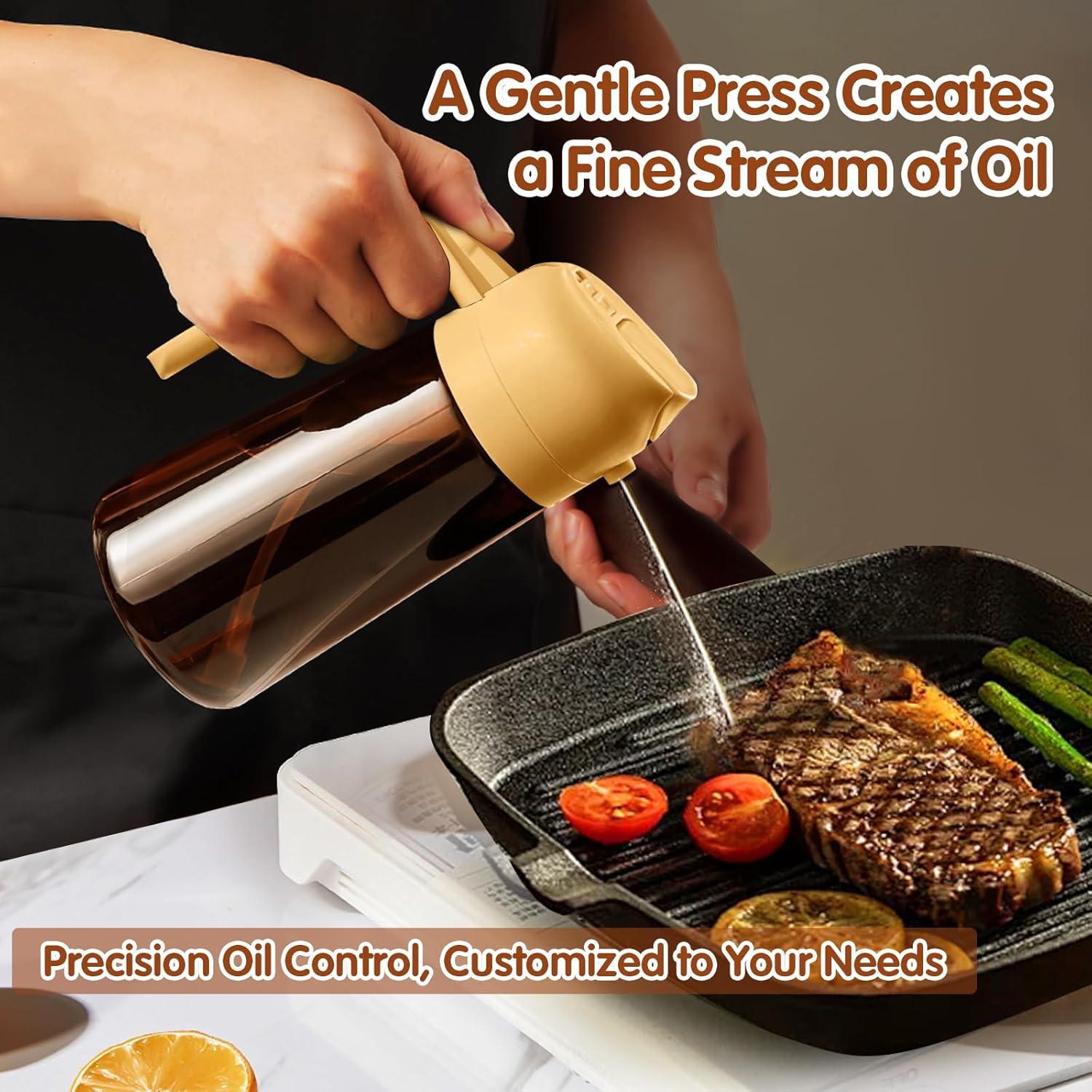 【Dual-Function Design & Multi-Purpose】: Oil mister spray bottle for cooking offers the convenience of both spraying and pouring oil, suitable for a wide range of food preparation processes such as salad dressing, griddle, roasting, grilling