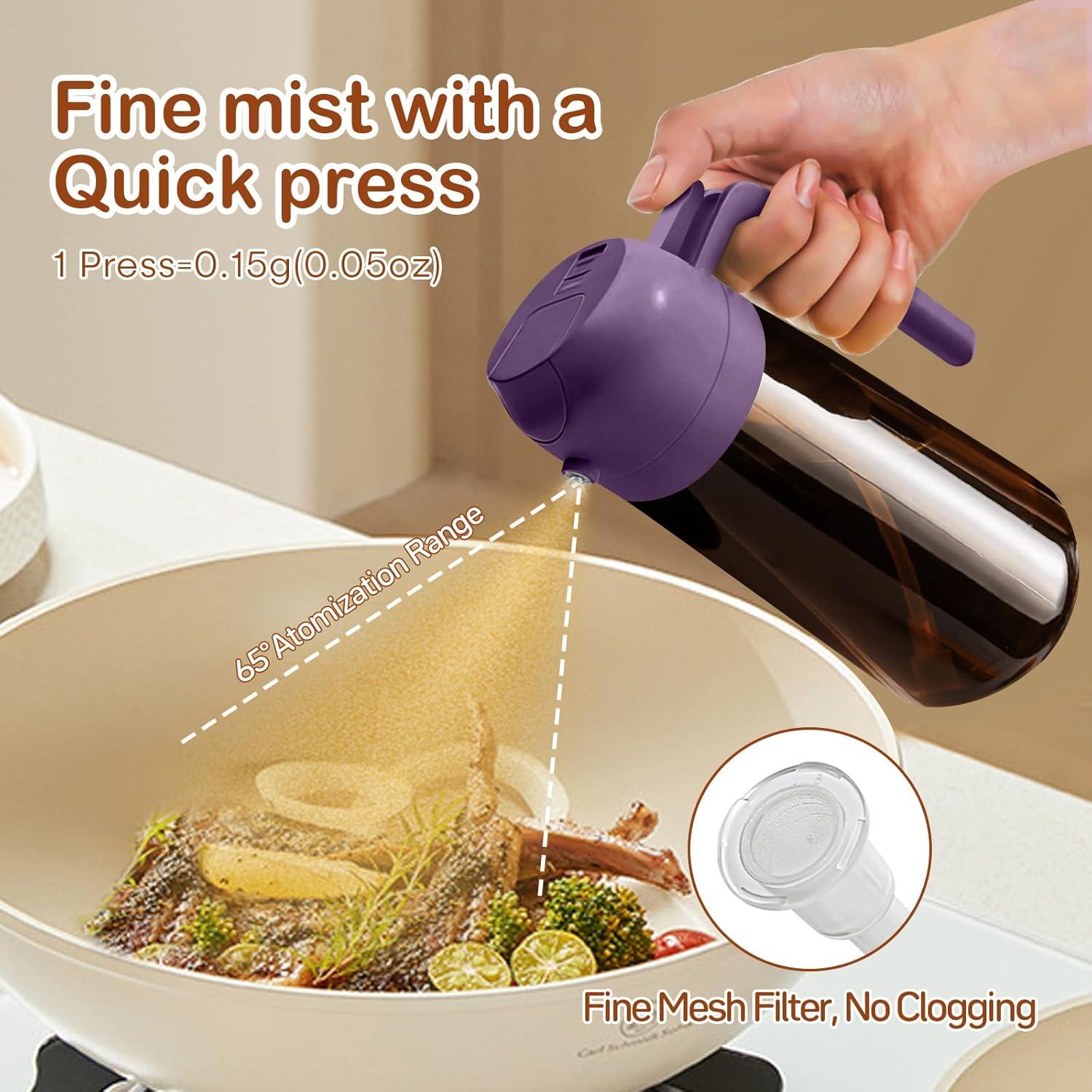 【Dual-Function Design & Multi-Purpose】: Oil mister spray bottle for cooking offers the convenience of both spraying and pouring oil, suitable for a wide range of food preparation processes such as salad dressing, griddle, roasting, grilling