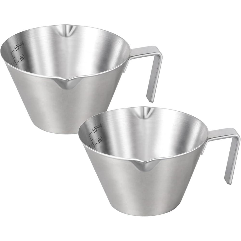 YARRAMATE 2 Pcs Espresso Cups with Handle, Stainless Steel Espresso Accessories, Double Spout Metal Measuring Cup with Dual Scale, Espresso Shot cup with V-Shaped Mouth, 3.4OZ/100ML(Sliver)(Sliver 1pcs)