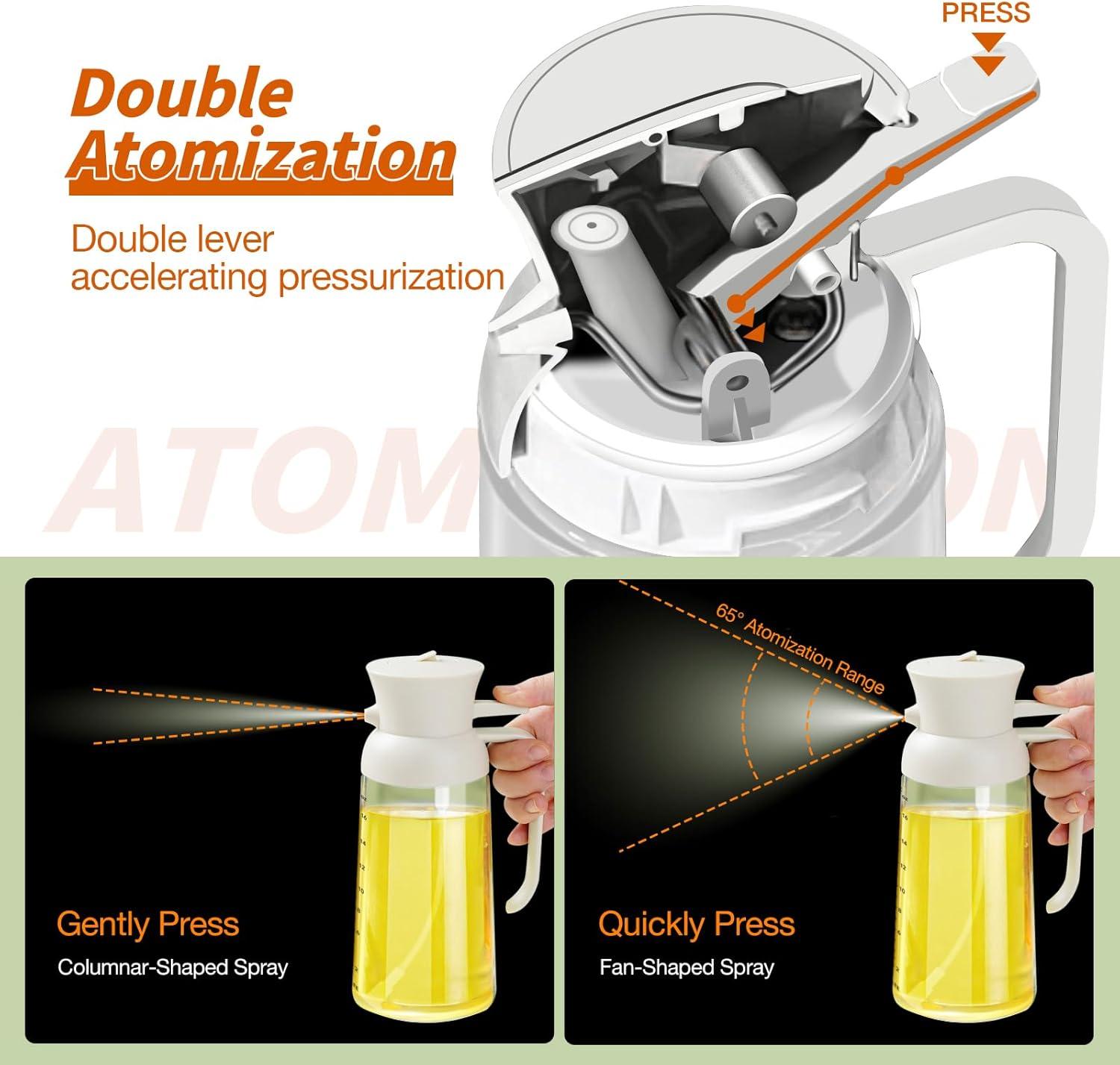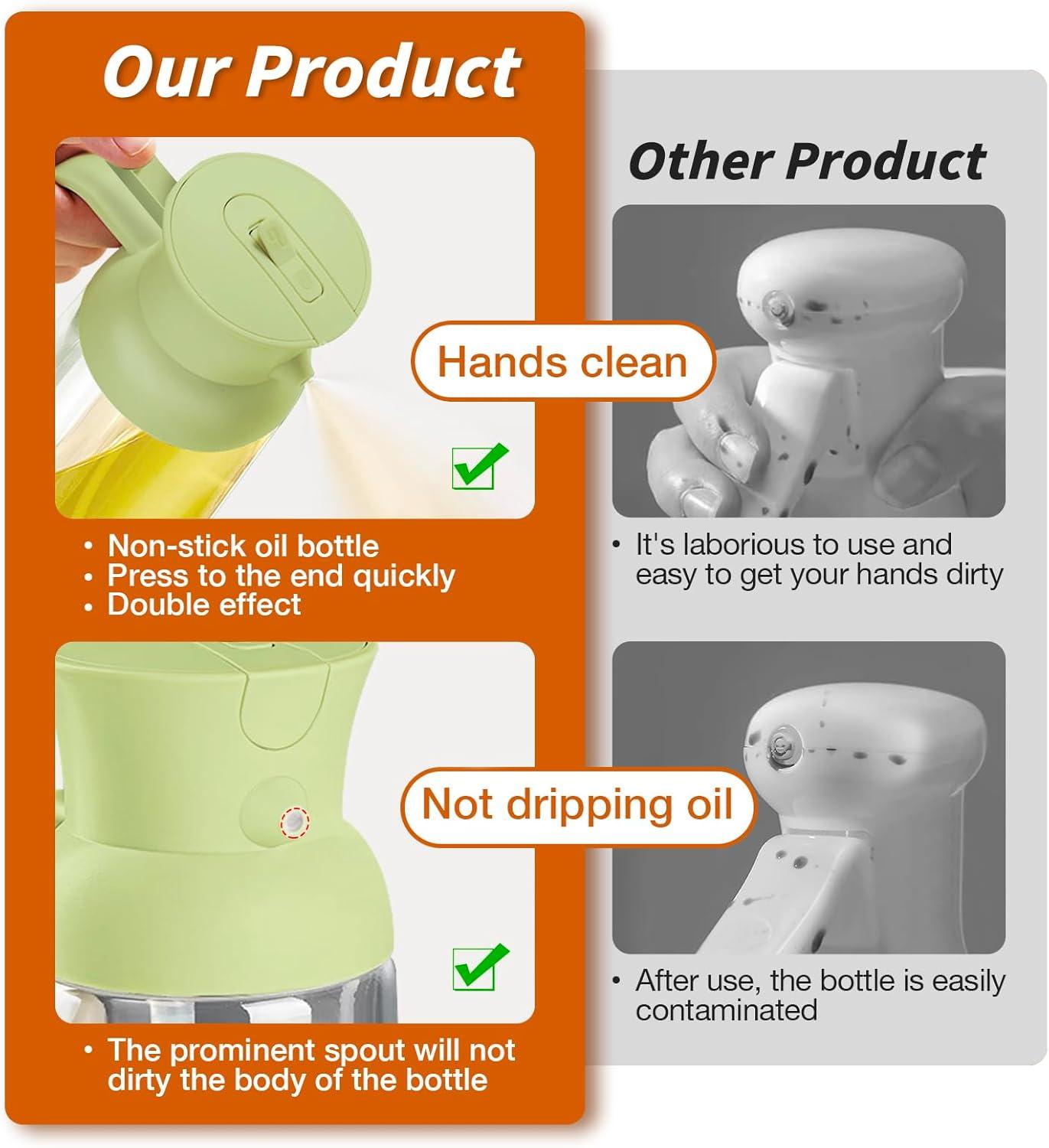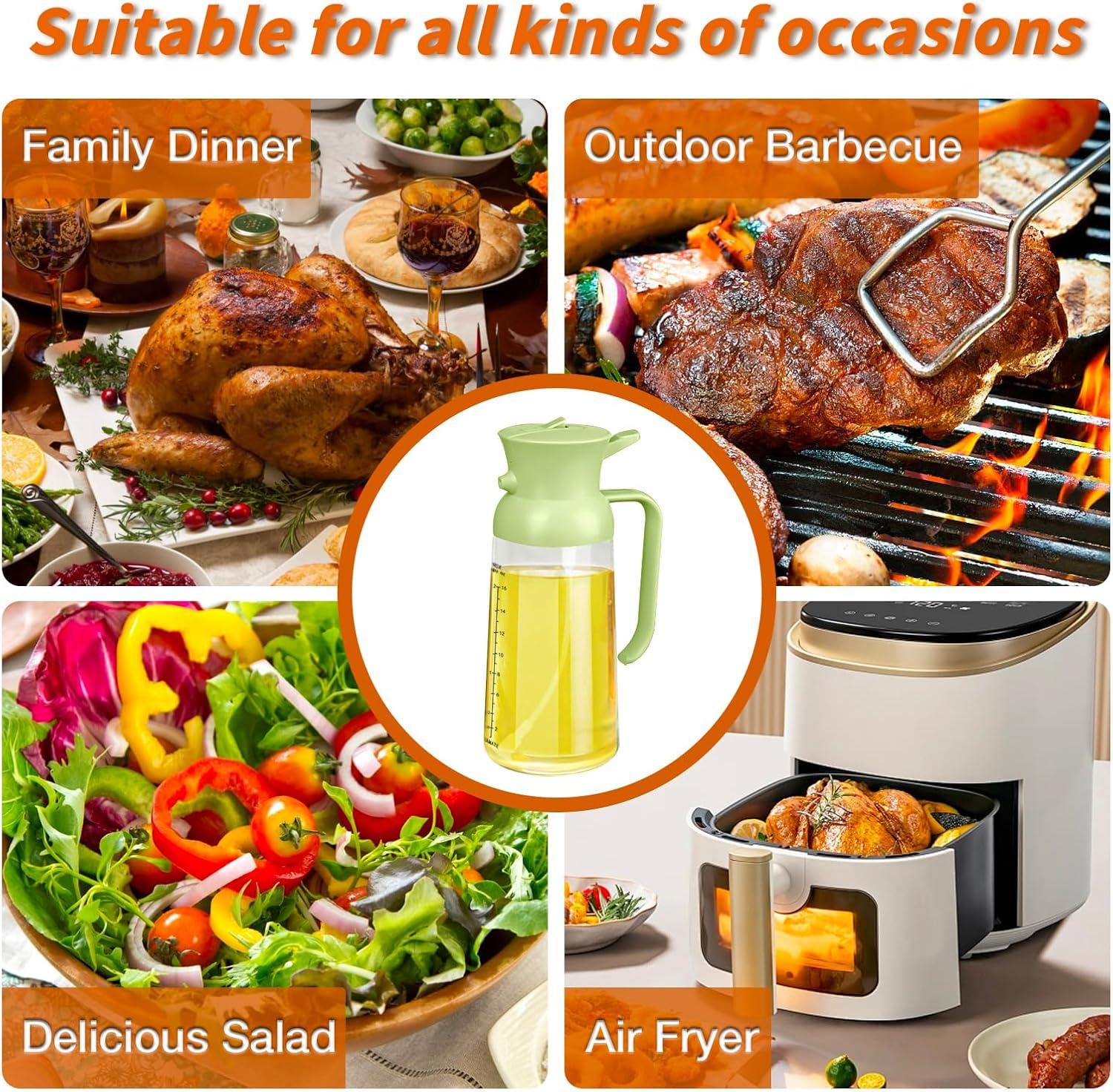 【Dual-Function Design & Multi-Purpose】: Oil spray bottle for cooking offers the convenience of both spraying and pouring oil, suitable for a wide range of food preparation processes such as dressing, griddle, roasting, grilling, baking