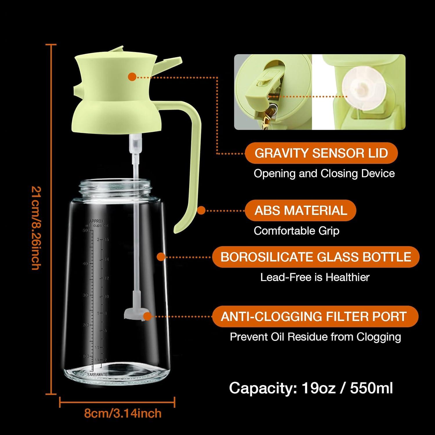 YARRAMATE Large Capacity 2 in 1 Oil Sprayer for Cooking with Measuring, 18oz/550ml Olive Oil Dispenser for Kitchen, Food-grade Oil Spritzer Bottle for Air Fryer, Salad BBQ (Black)(06_2Pcs White&Green)