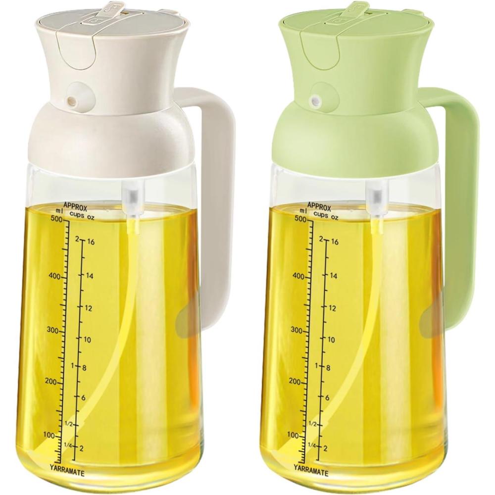 imageYARRAMATE Large Capacity 2 in 1 Oil Sprayer for Cooking with Measuring 18oz550ml Olive Oil Dispenser for Kitchen Foodgrade Oil Spritzer Bottle for Air Fryer Salad BBQ Black062Pcs WhiteGreen
