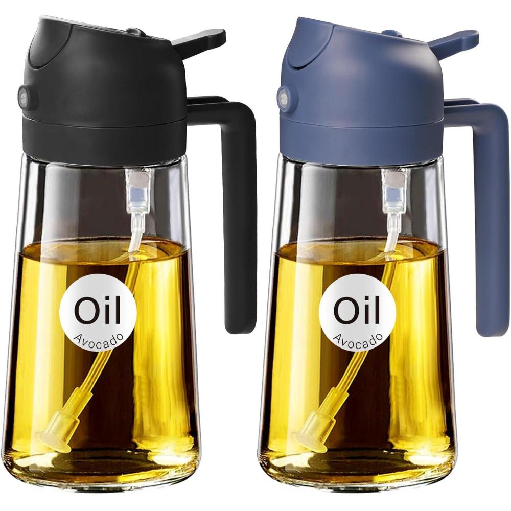 YARRAMATE Olive Oil Dispenser, 2 in 1 Oil Sprayer for Cooking, 16oz/470ml Glass Oil Spray Bottle with Pourer, Food-grade Oil Dispenser and Oil Sprayer for Kitchen, Salad, Frying, BBQ (Black & Green)(18_2Pcs Black&Navy)