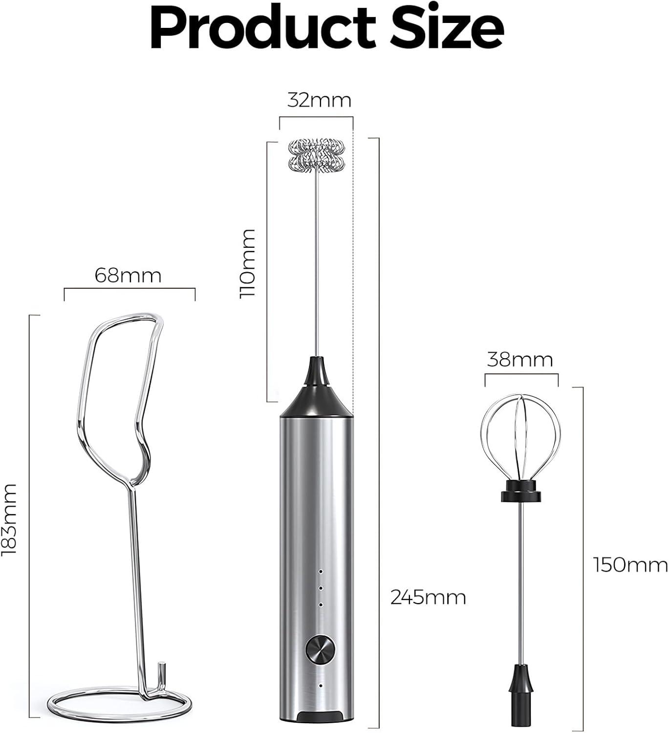 Trendy & Versatile Design: Modern decorative accents and a brushed stainless steel finish set this rechargeable coffee whisk frother apart, adding durability and style to any kitchen